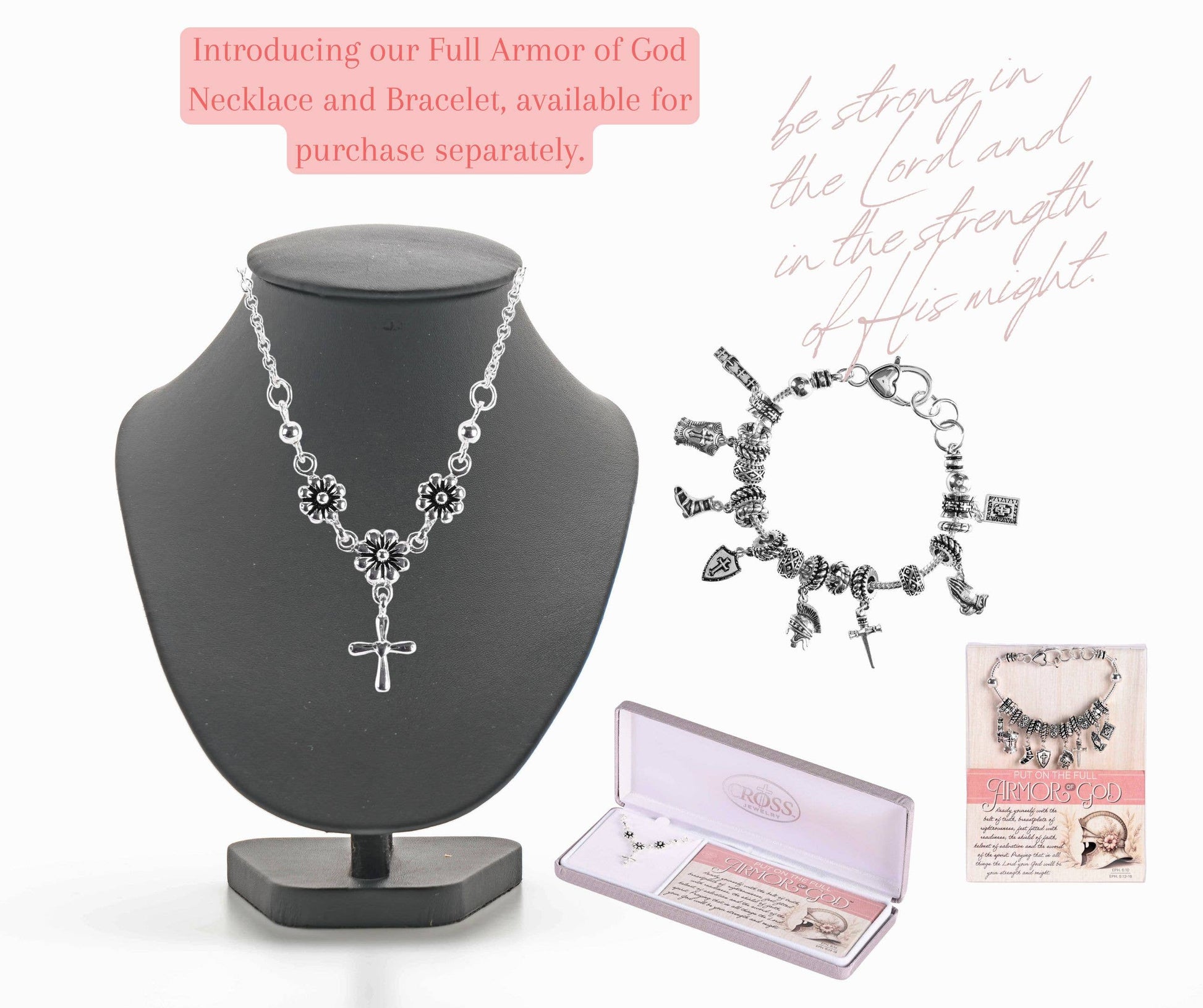 Eight Silver-Plated Symbol Charms Representing The Biblical Armor Of God Are Strung Along A Snake Chain That Measures 7-1/2 Long, With A Large Lobster Claw Clasp. Charms Are Approximately 1/4 Inch Long. Based On Ephesians 6:17. Comes Packed In A Clear Acetate Box Measuring 4-1/2 x 5/8 x 8-3/4 With Insert Featuring Ephesians 6:10,13-18: Ready Yourself With The Belt Of Truth, Breastplate Of Righteousness, Feet Fitted With Readiness, The Shield Of Faith, Helmet Of Salvation, And The Sword Of The Spirit. Praying That In All Things The Lord Your God Will Be Your Strength And Might.