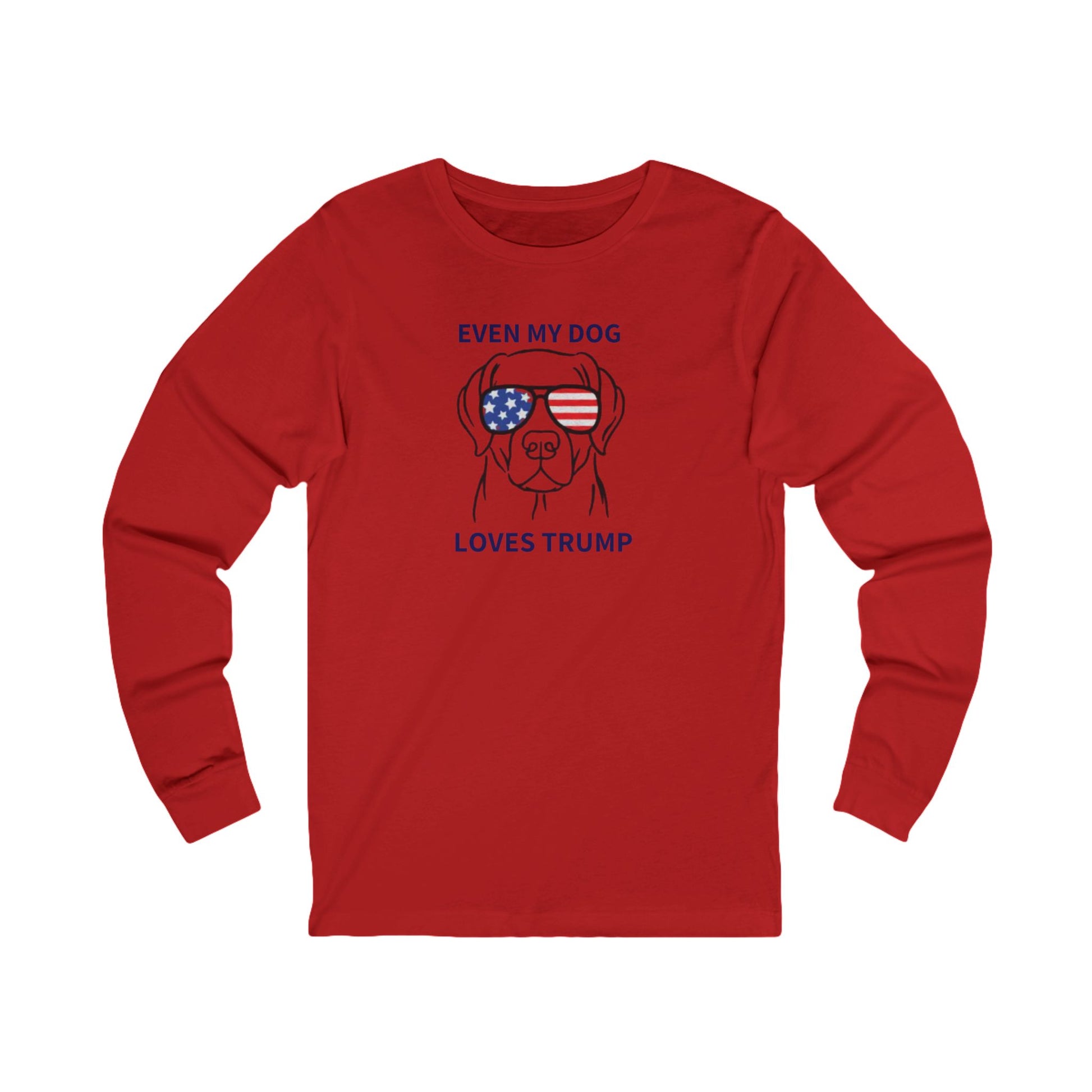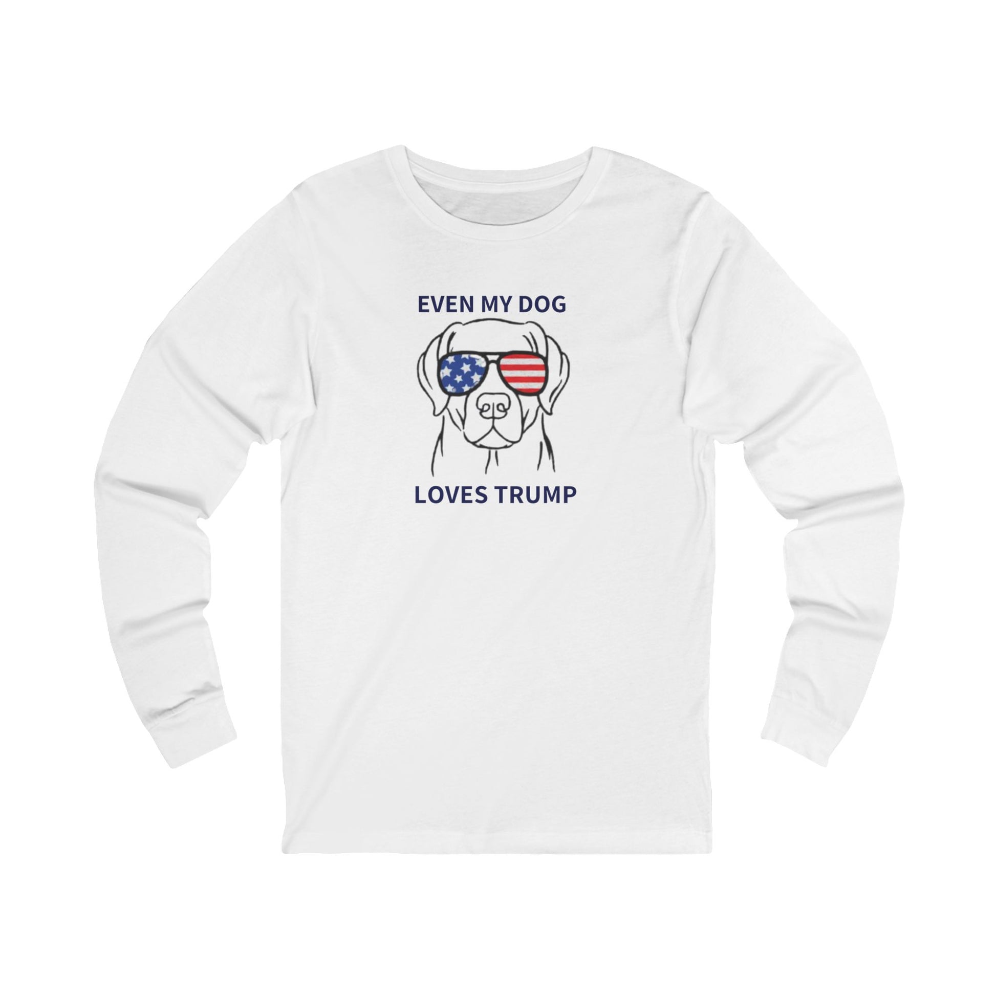 This "Even My Dog Loves Trump" Long Sleeve Tee is a must-have for any Patriot-Dog Lover. The fabric is soft and lightweight, with a retail fit that layers easily under jackets or over a tank. Side seams and shoulder tape keep the shape through repeated wear. It feels lived-in from the first wear, and the understated print keeps the focus on what matters.