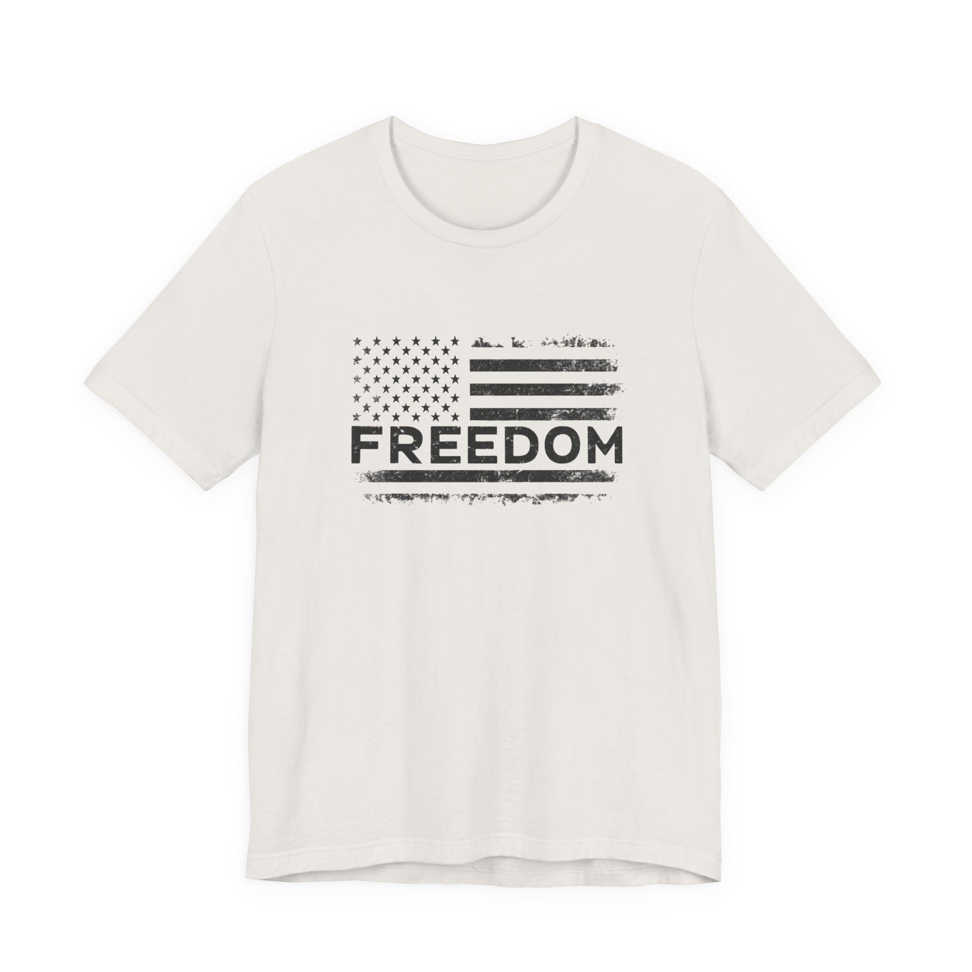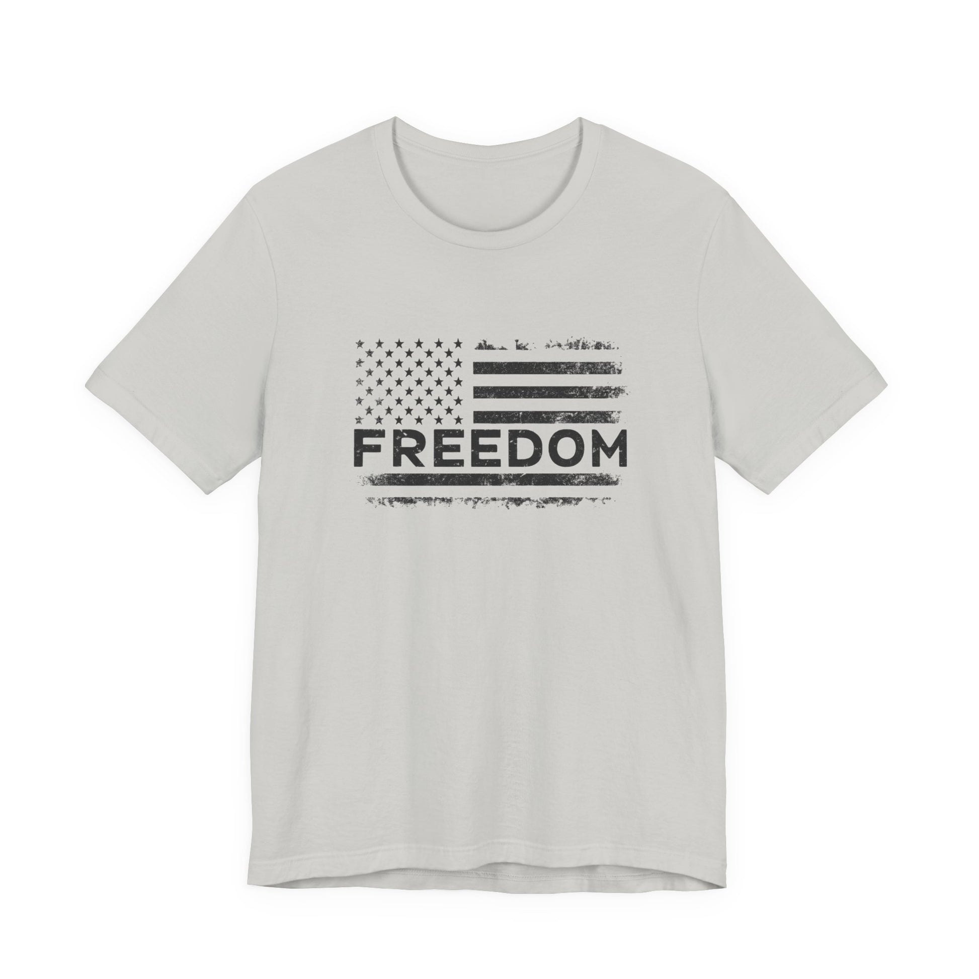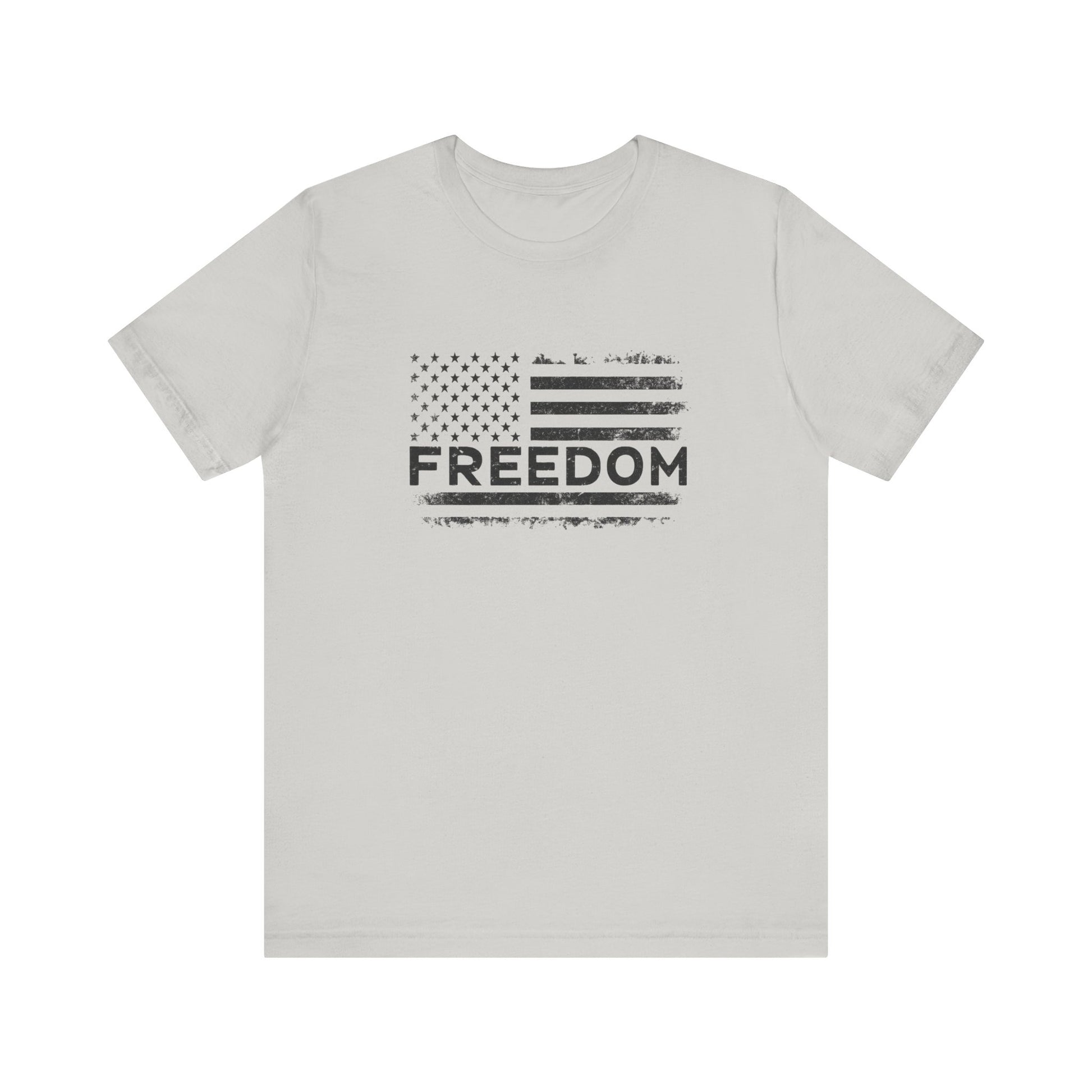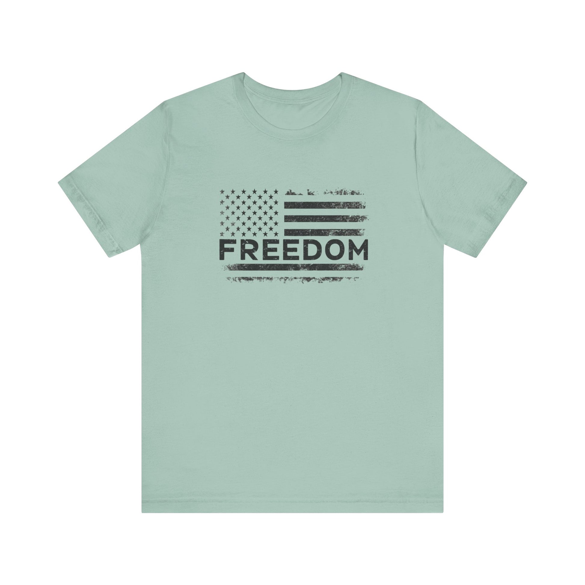 This Freedom Flag t-shirt is perfect for those who support his beliefs and ideals. This tee exudes patriotism and a sense of unity, ideal for wearing during political rallies, Fourth of July celebrations, and patriotic holidays.