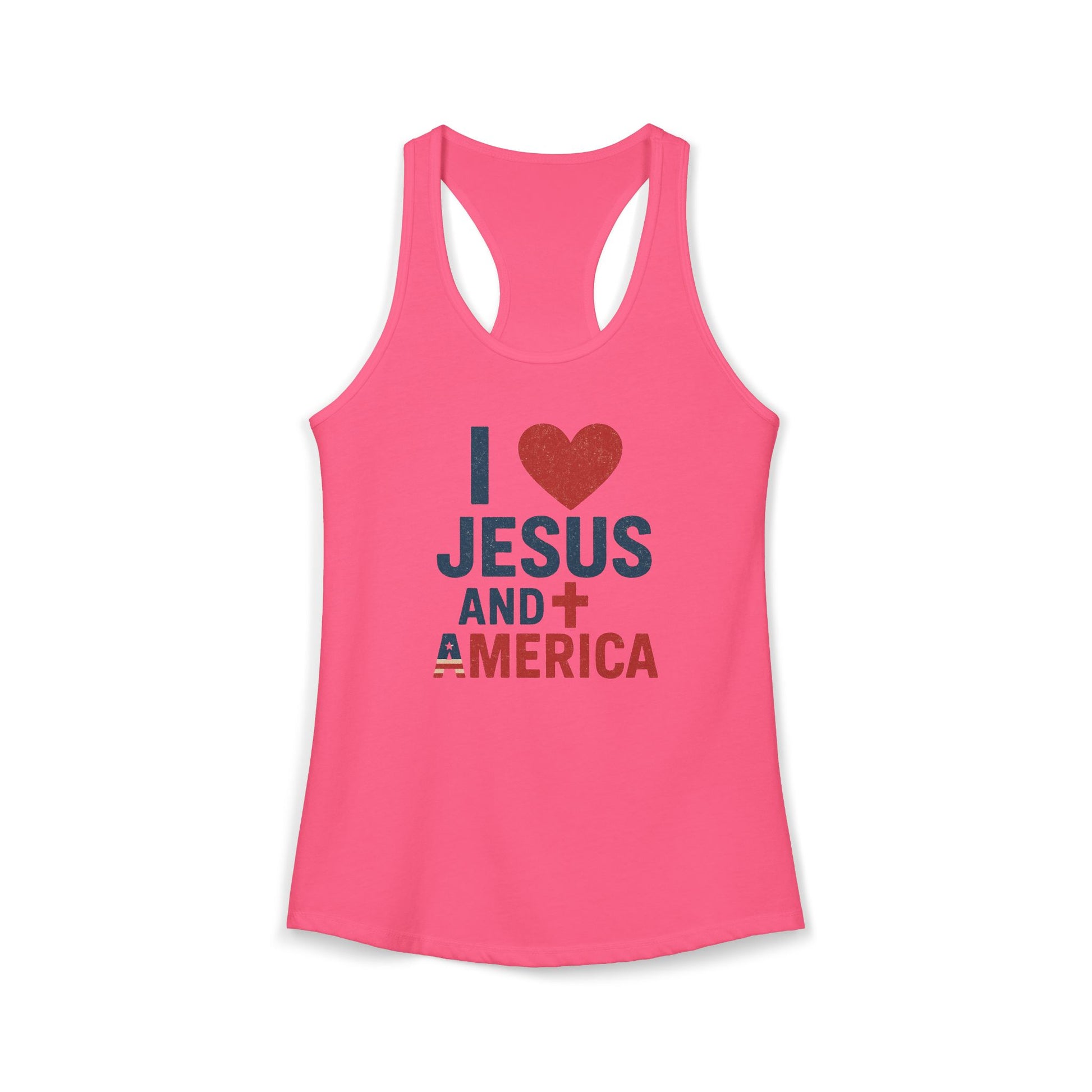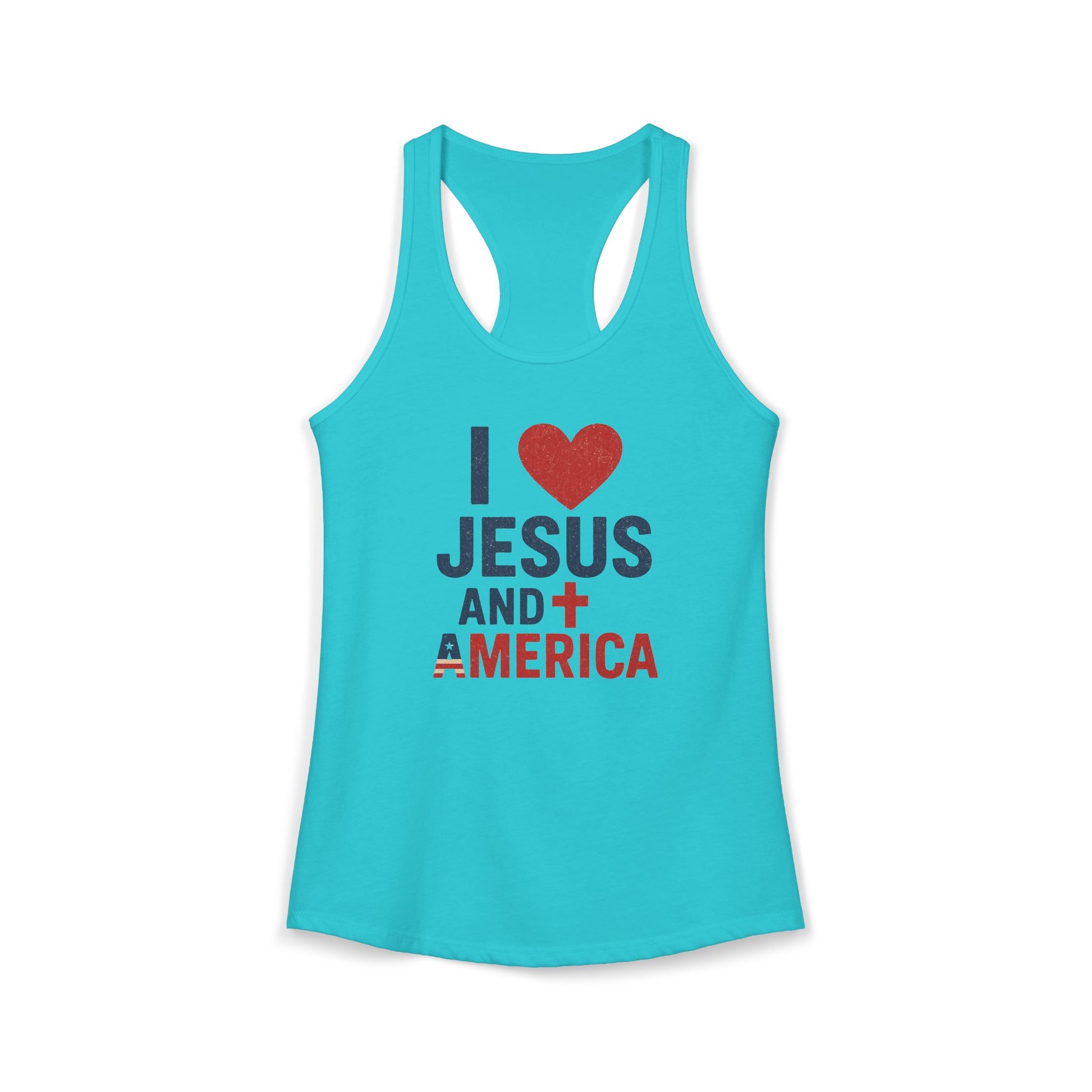 I Love Jesus and America Tank — Women's Racerback Faith & Patriotism Tank Top