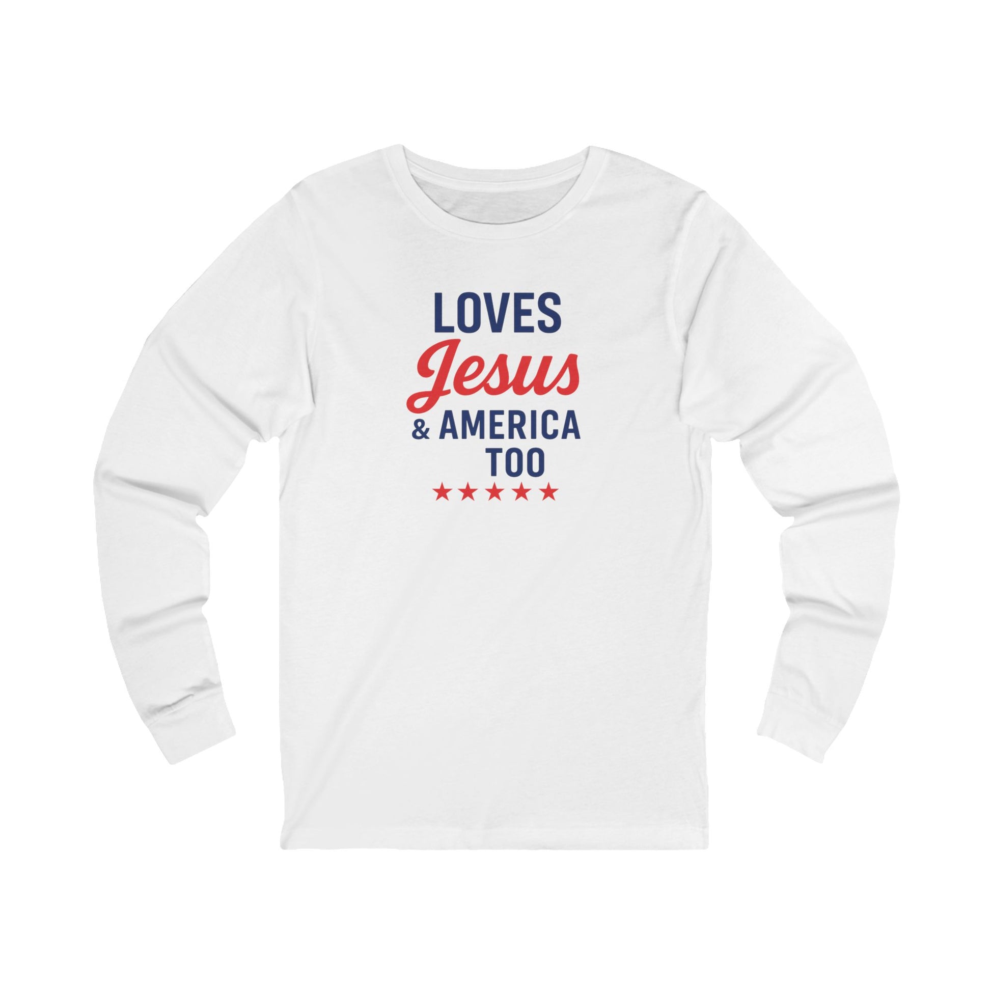 For the believer who loves their Savior and their country — this long-sleeve tee says it proud. Featuring a bold retro-script design with patriotic flair, it’s perfect for Sundays, barbecues, parades, and everyday wear. Soft, lightweight, and designed for movement, this tee is a comfortable staple for faith-forward Americans.