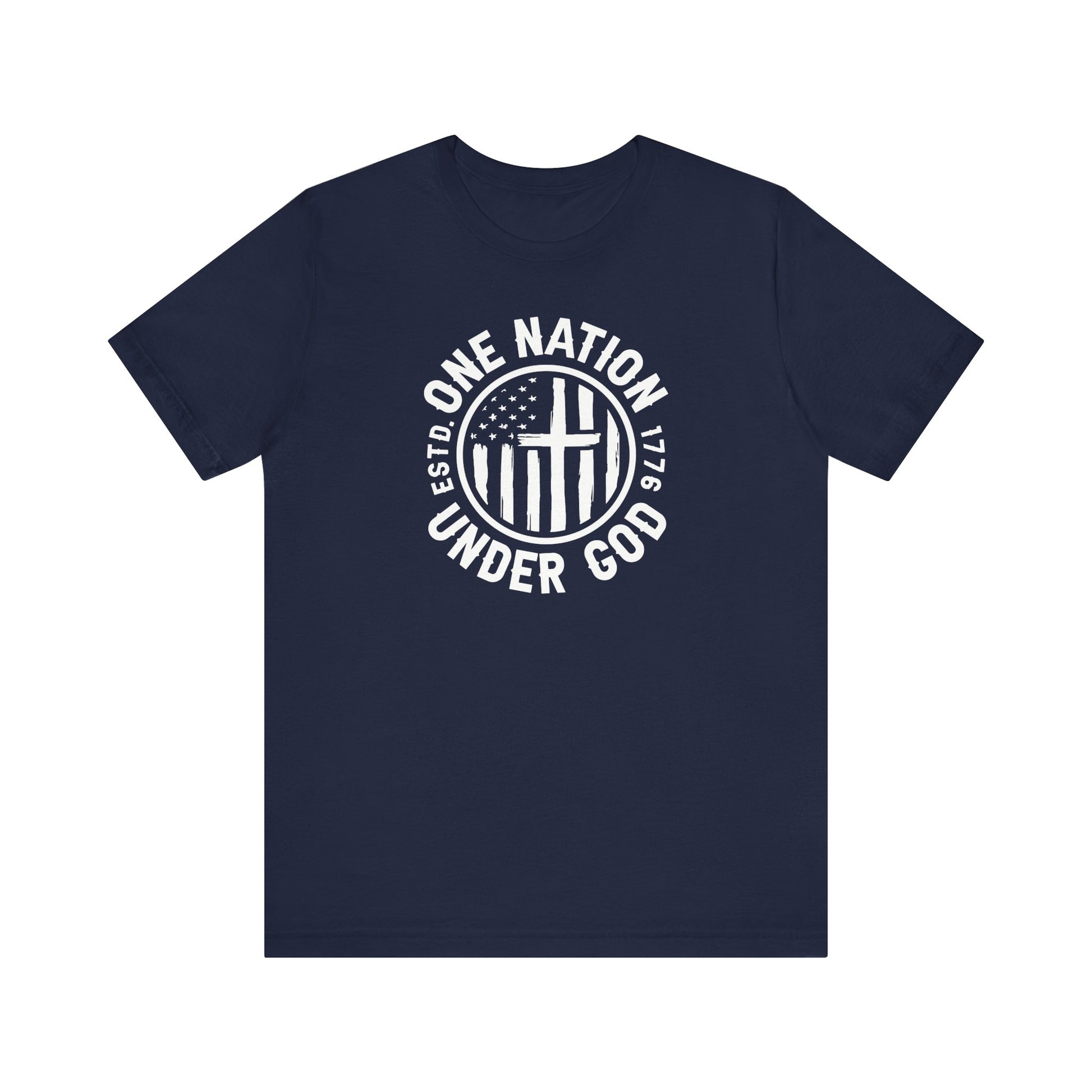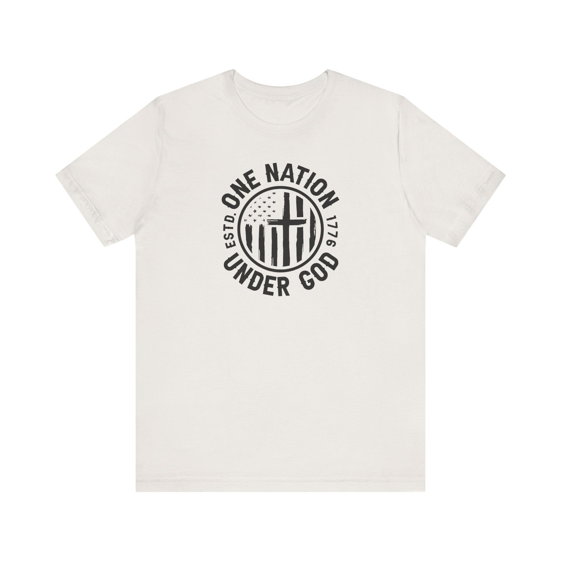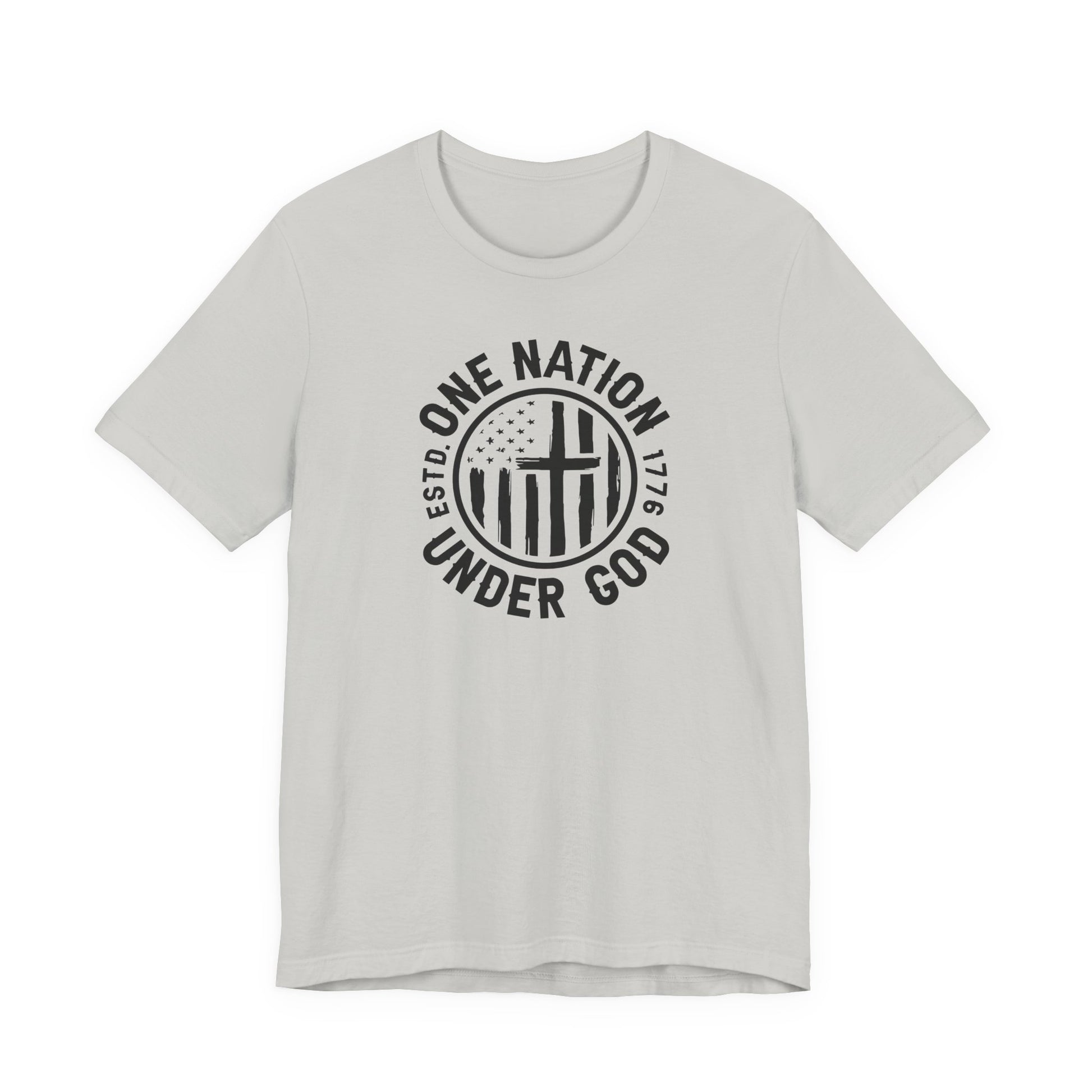 This One Nation Under God Tee exudes patriotism and faith. A perfect choice for those who want to show their pride in their country and religious beliefs. Ideal for Fourth of July celebrations, Memorial Day, Veterans Day, or everyday wear for those who value their faith and country.