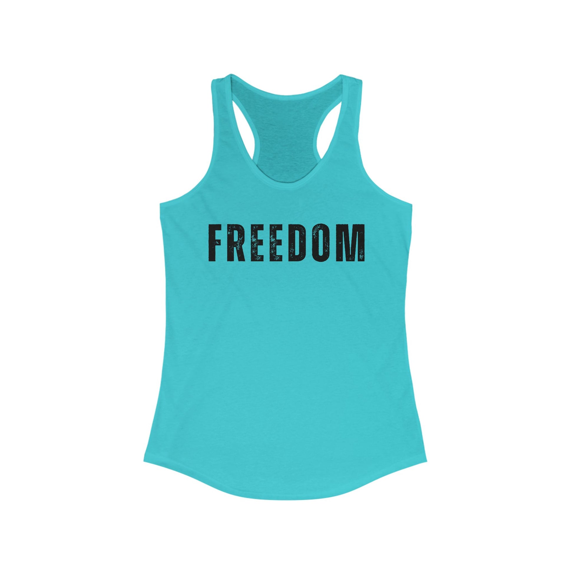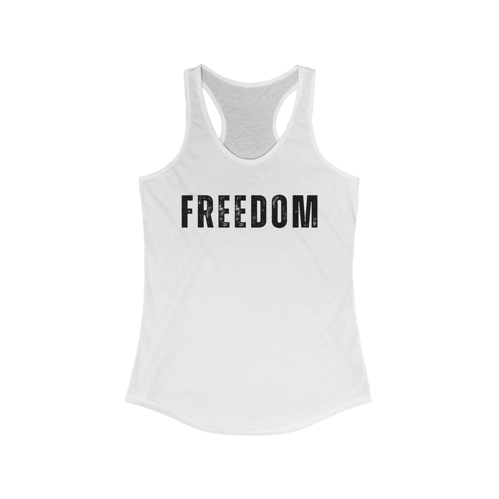 This patriotic Freedom tank top exudes a sense of pride and love for one's country. Perfect for 4th of July celebrations, Memorial Day, Veterans Day, or any patriotic event. The racerback tank is lightweight and comfortable, making it ideal for an active lifestyle. Designed with side seams and self fabric binding for durability and structural support. The classic fit and scooped neckline add a sporty touch to any outfit.