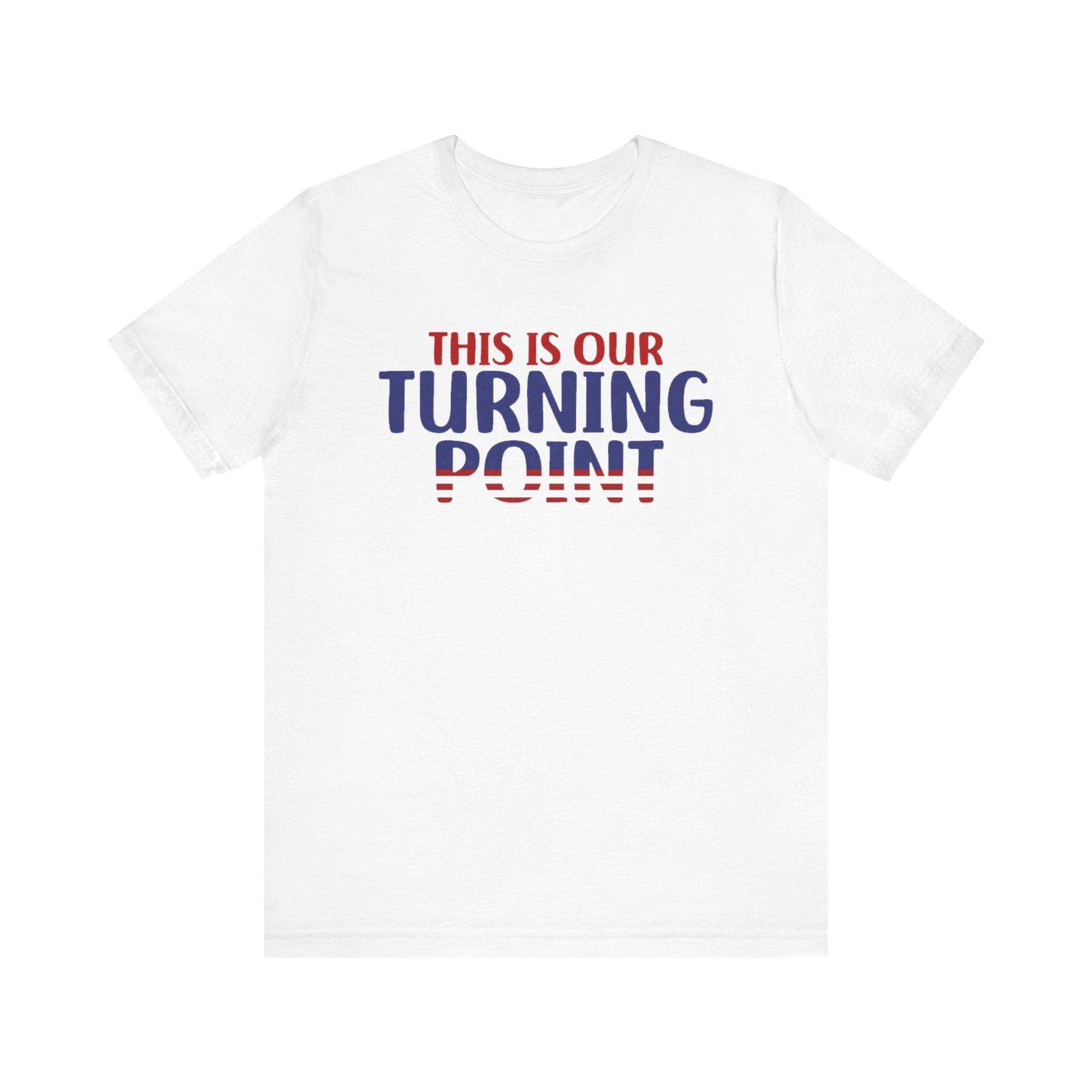 The Turning Point Tee is a tribute to Charlie Kirk, offering a classic, comfortable fit with a crew neckline and lightweight fabric. Perfect for casual and semi-formal wear, this tee is ideal for both active and leisure activities. Relevant to fans of Charlie Kirk and those interested in conservative politics. Perfect for wearing to rallies, events, and everyday wear.